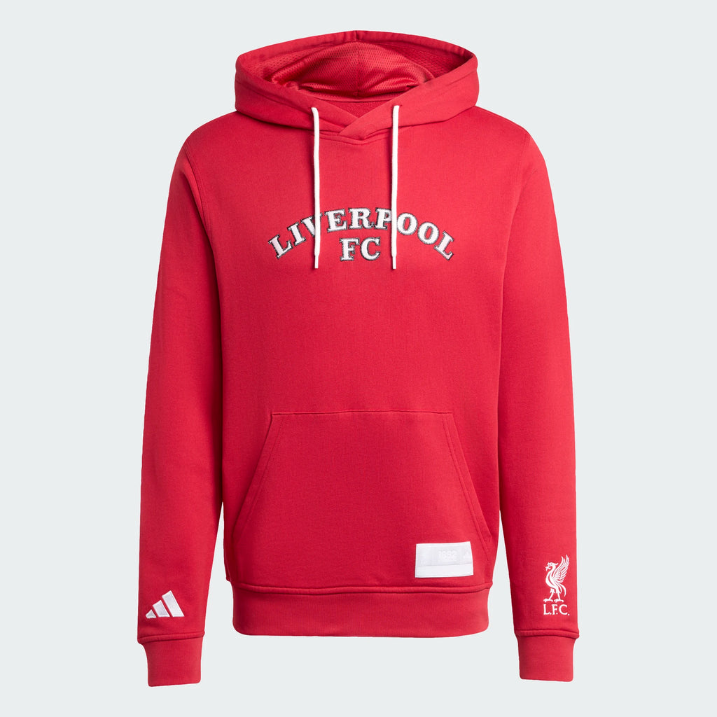A stylish blend of soccer and baseball culture, this Liverpool FC hoodie from adidas is a must-have for fans with a thing for US sports. Its soft French terry fabric, spacious hood and kangaroo pocket ensure you stay comfortable in your colors. That team name arching across the chest finishes the bold look in style.